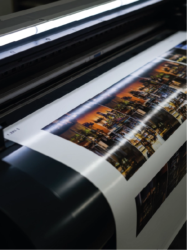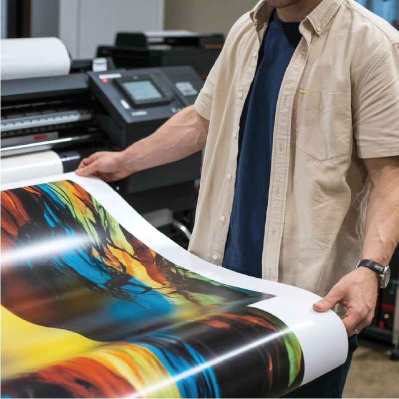 Tarjetas de visita, flyers, sobres, carteles… y también de merchandesign como imanes para vehículos, cuadros de lienzo e impresión en papel mupi.
